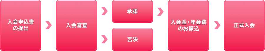 入会にあたっては、ご提出いただいた「入会申込書」によって理事会の審査を受け、承認を得る必要があります。