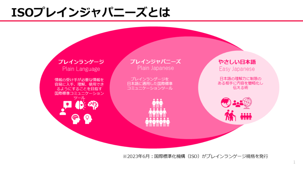 プレインジャパニーズは、ISOプレインランゲージのガイドラインに則った世界基準のコミュニケーション法です。
